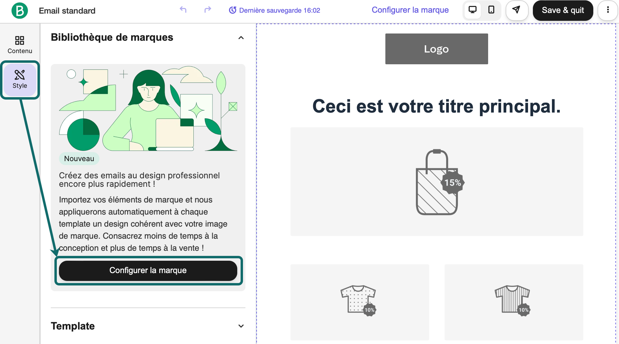 Depuis l’éditeur d’email, accédez à l’onglet Style dans le panneau de gauche.